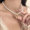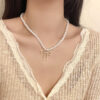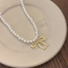 The Sweet Bow Pearl Necklace is a charming and elegant piece of jewelry that combines the classic sophistication of pearls with the playful and feminine touch of a bow design. This necklace is perfect for adding a touch of grace and whimsy to any outfit.
